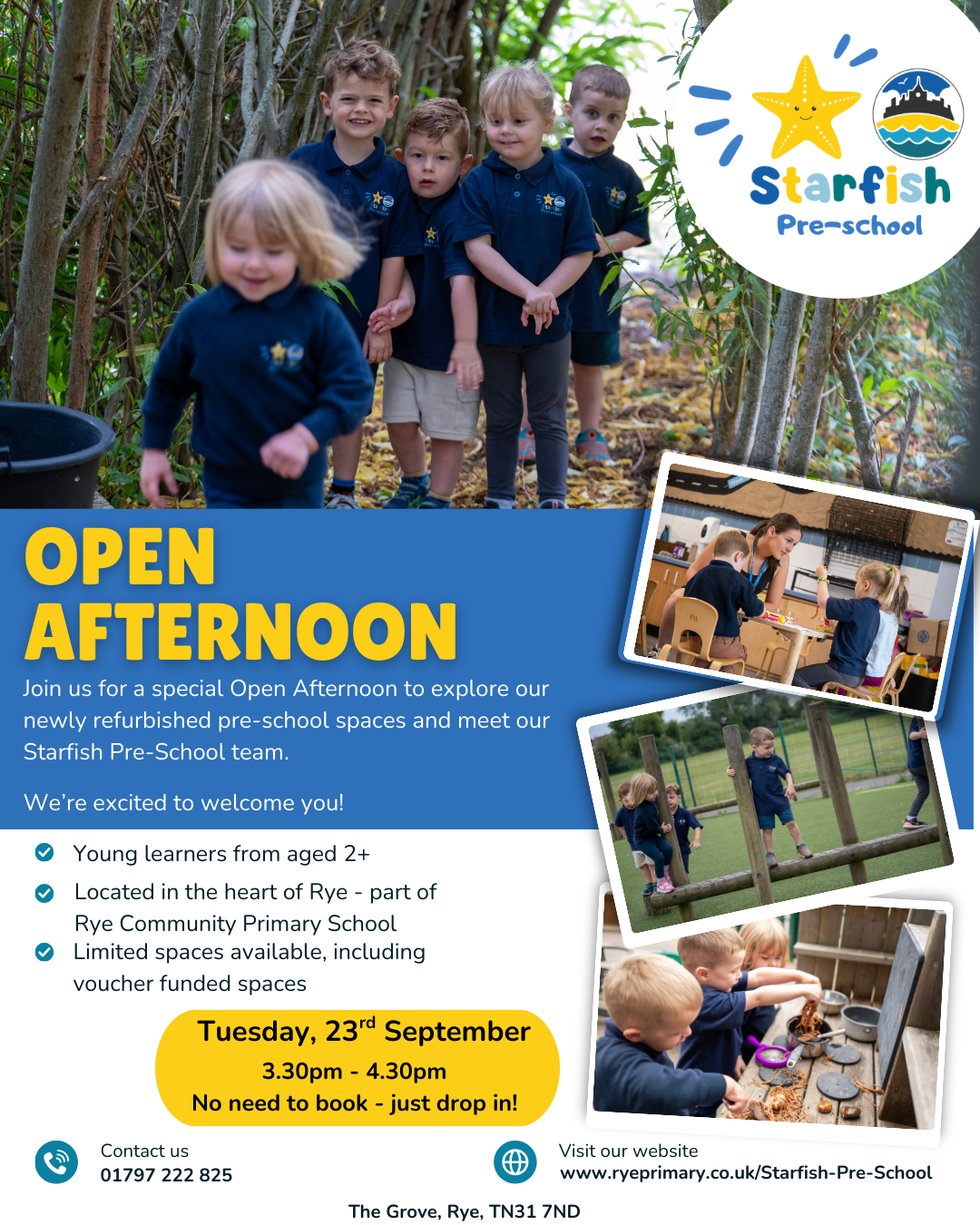 Come and explore our newly refurbished spaces at Starfish Pre-school during our Open Afternoon! No need to book. We look forward to welcoming you!